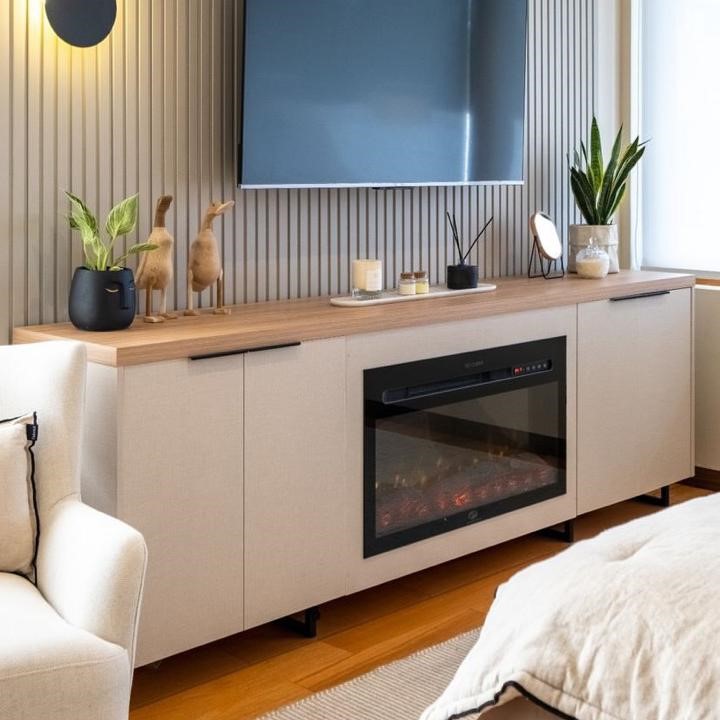 Proporciona calor rápidamente gracias a su sistema turbo y su sistema de iluminación en colores se transforma en un extraordinario elemento decorativo, sin necesidad de activar el calefactor, logrando hermosos y cálidos ambientes.